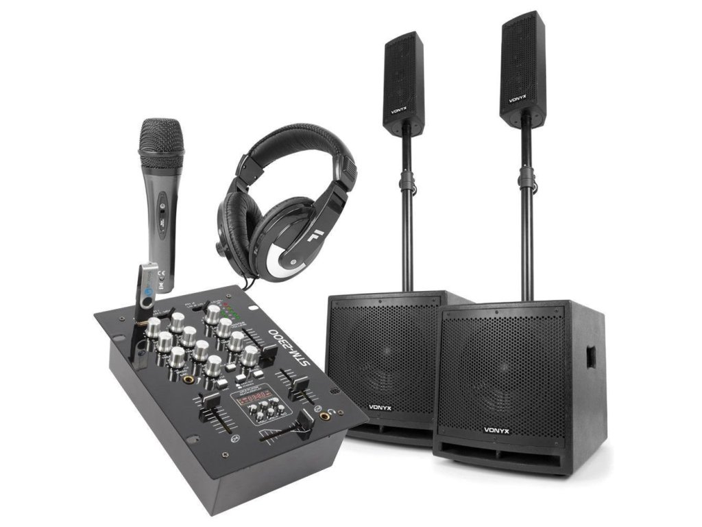 Výhodný set aktívnych reproboxov Vonyx VX1000BT 1000W 2.2, mixpultu Skytec STM-2300, sady DJ príslušenstva Fenton SH400 a káblu Power Dynamics CX94-6 6m.