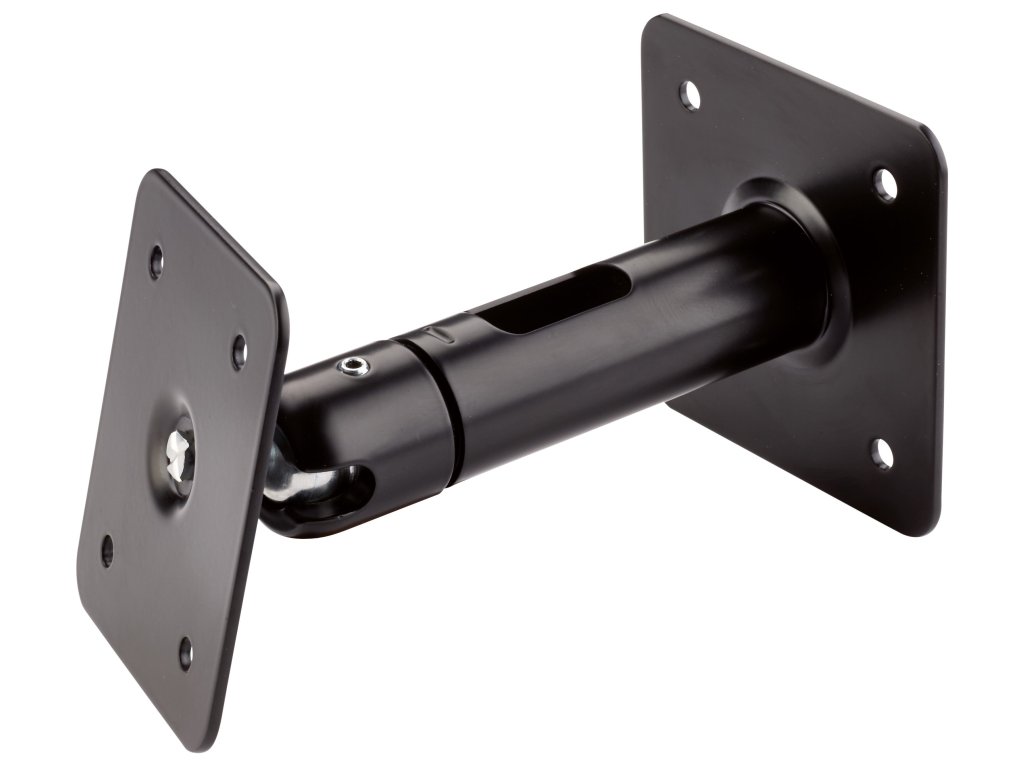 Oceľový držiak na stenu alebo strop so závitovým konektorom 3/8" vhodný pre malé reproduktory. Káblový vývod pre skryté interné vedenie kábla. Presné nastavenie kĺbu pomocou závitového čapu. Uhol náklonu 0° - 90°. Nosnosť držiaka 10 kg. Vzdialenosť od steny 160 mm. S doštičkou na upevnenie reproduktora.