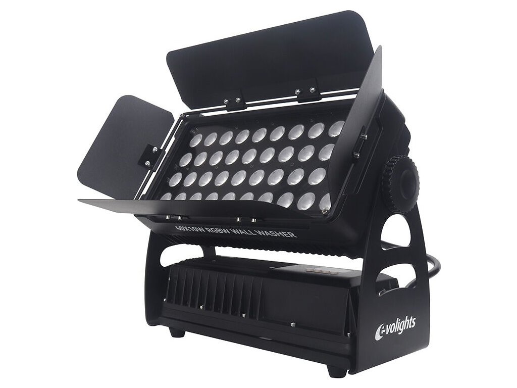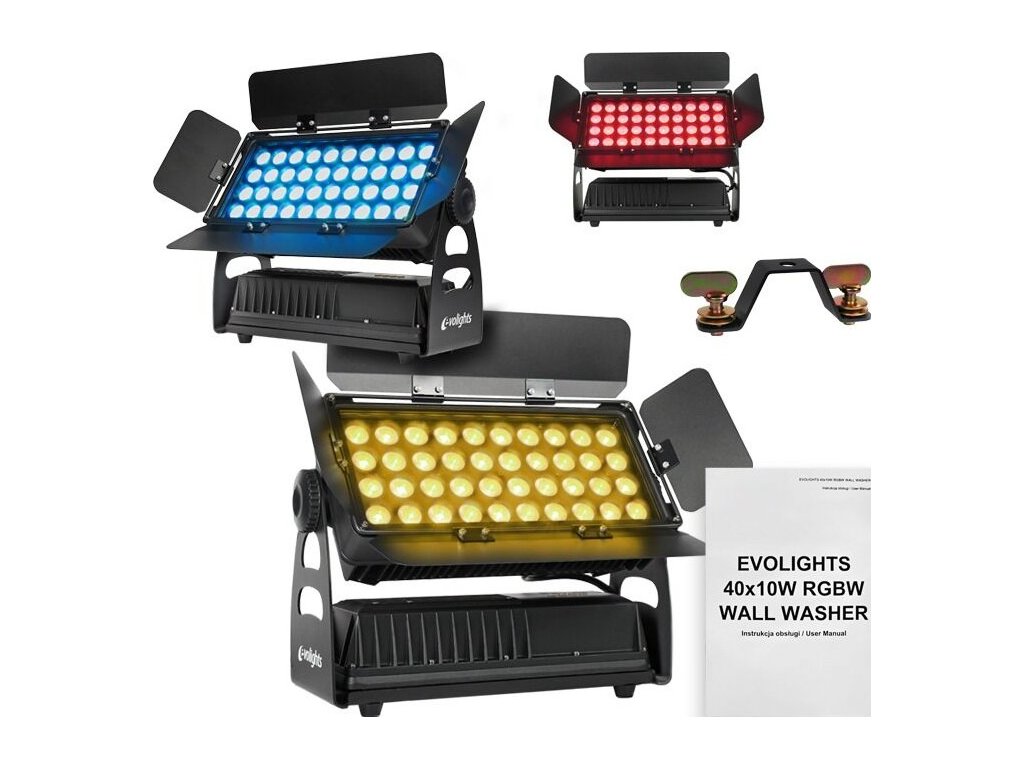 EVOLIGHTS 40X10W RGBW WALL WASHER má neuveriteľne široké spektrum využitia a skvele sa osvedčí na mnohých miestach, ako sú kluby, svadobné siene, divadlá alebo vonkajšie koncertné pódiá. Reflektor môže slúžiť aj na dekoráciu svetlom a vytvárať veľkolepé akcentné osvetlenie. Jeho kompaktné rozmery a ľahká konštrukcia zaisťujú, že sa ľahko prepravuje aj montuje. Vďaka rôznym prevádzkovým režimom (auto, master/slave, DMX) je možné zariadenie bezproblémovo prispôsobiť vašej svetelnej show, takže aj osoby bez technických skúseností zvládnu jeho obsluhu. Ovládací panel s LED displejom a štyrmi tlačidlami uľahčuje intuitívne a rýchle nastavenie parametrov zariadenia.