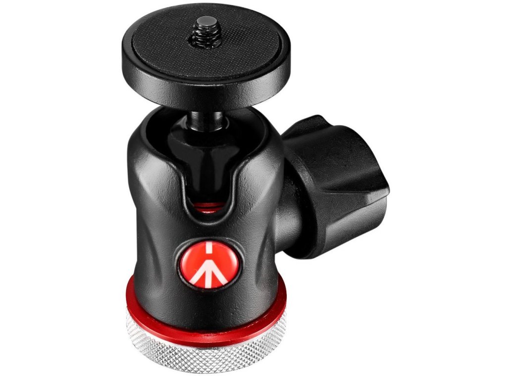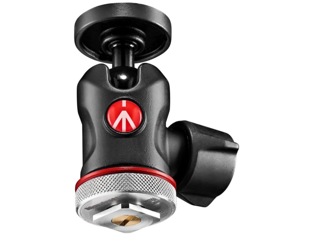 Mini guľová hlava s montážou do sánok blesku na fotoaparáte, vyrobená z hliníka, iba s jedným otočným gombíkom na utiahnutie pozície. Umožňuje fotenie na výšku vďaka žliabku v uložení gule, do ktorej presne zapadne stĺpik pod uhlom 90°. Cez veľmi malé rozmery má úctyhodnú nosnosť 4 kg.