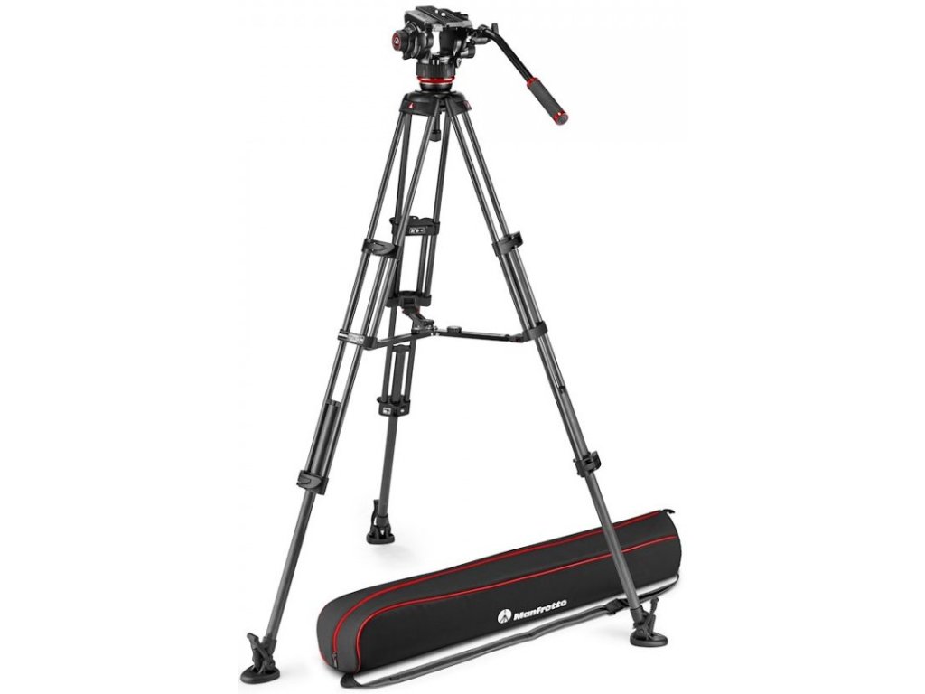 Tento video systém zahŕňa fluidnú statívovú hlavu Manfrotto 504X Fluid Video Head a MVTTWINMC statív s dvojitými nohami z uhlíkových vlákien a stredovou rozpierou.