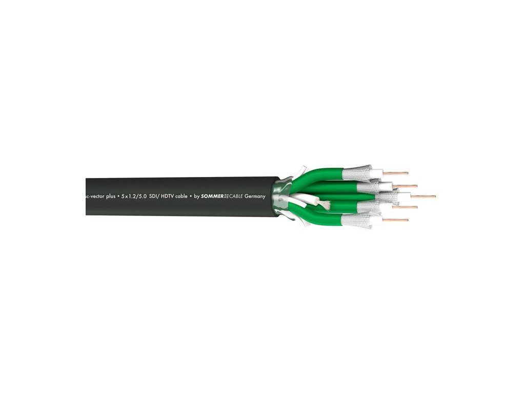 Viacžilový video kábel VECTOR PLUS 5 je navrhnutý pre náročné aplikácie s vysokým HD-SDI a 3G-SDI/UHD rozlíšením. Kábel je zložený z 5x 0,88 mm (AWG18) samostatný lankový vodič, priemer jednotlivých PVC obalov 1,06 mm, izolačná pena PE 5,0 mm, celkový priemer PVC 22,1 mm, impedancia 75 Ohm, postriebrené medené tienenie 100 % + AL fólia, teplotný rozsah použitia -10° C až + 80° C, kapacita na 1 m 52 pF, hmotnosť 1 m 510 g, farba čierna. Kábel je vhodný pre mobilné aplikácie a aj pevné inštalácie.