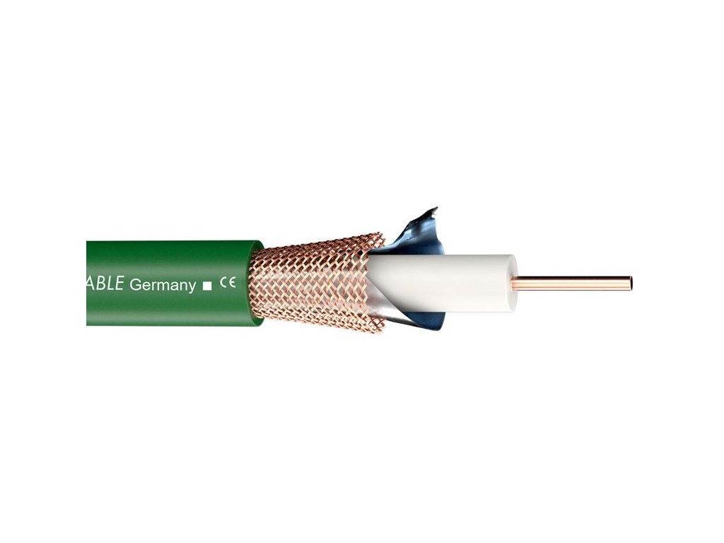 Profesionálny 75 Ohm video kábel vhodný pre prenos 3G-SDI, 6G-SDI a 12G-SDI signálu. Drôtový hlavný vodič 1 x 1,6 mm (AWG14). Hrúbka izolácie vodiča 7 mm, medené 100 % tienenie + AL fólia, kapacita na 1 m 53 pF, priemer PVC 10,2 mm, hmotnosť 1 m 120 g, teplotný rozsah využitia -25° C - +30° C, farba zelená. Kábel je vhodný pre náročné pevné inštalácie. Halogen-free / LSZH.
