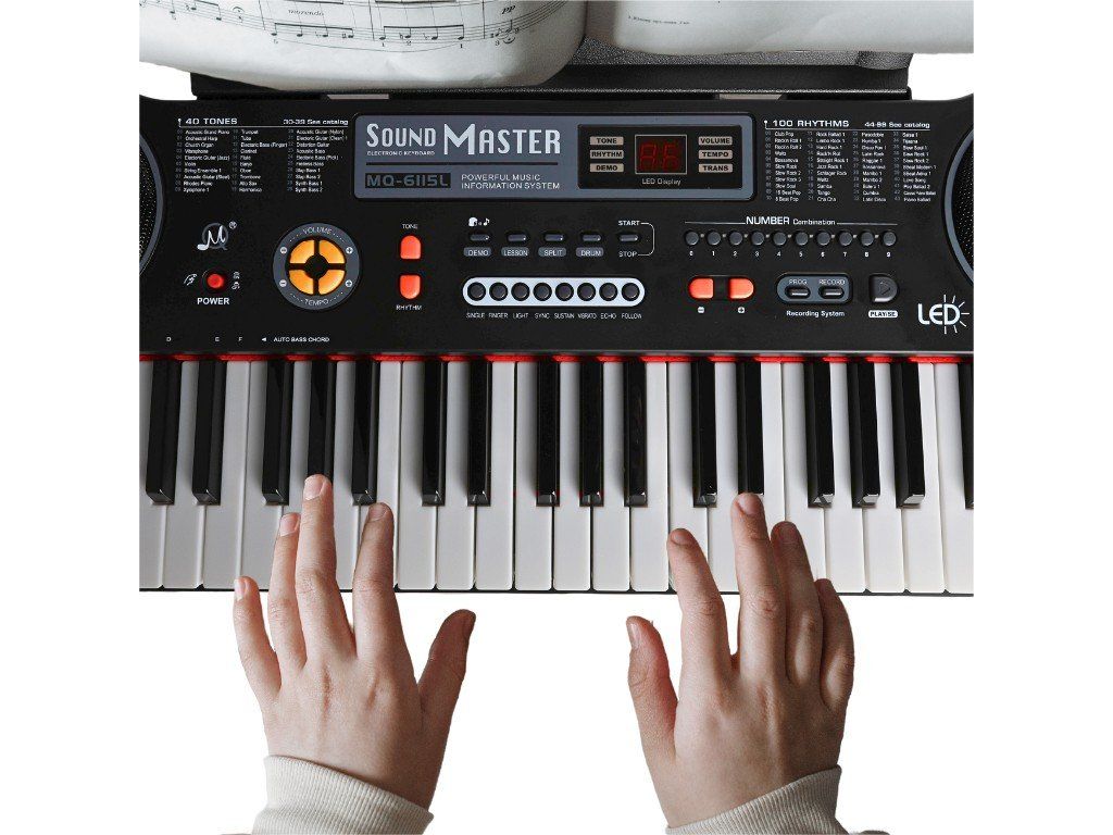 Keyboard MQ 6115L je ideálny nástroj na výučbu hry a zábavu, vybavený 61 klávesami. Bohatá banka zvukov, rytmických podkladov a demonštračných skladieb umožňuje deťom spoznať zvuky rôznych nástrojov, rytmov a hudobných štýlov z celého sveta. Navyše po zvolení zvuku bicích sú ku klávesám priradené rôzne bicie nástroje, ktoré umožňujú vytvárať a programovať rytmus samostatne. To všetko robí čas strávený s MQ 6115L veľmi hodnotným z hľadiska hudobnej výučby.