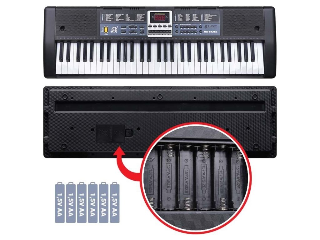 Keyboard MQ 6136L je ideálnym nástrojom pre učenie aj pre hranie! Je vybavený 61 klávesmi. Vďaka bohatej banke tónov, rytmov a demo skladieb sa deti naučia zvuky rôznych nástrojov, rytmov a hudobných štýlov z celého sveta. Po výbere zvuku bicích nástrojov sú navyše klávesám priradené rôzne bicie nástroje, ktoré im umožňujú vytvárať a programovať rytmus. Vďaka tomu všetkému je čas strávený s MQ 6136L jednoducho skvelá zábava!