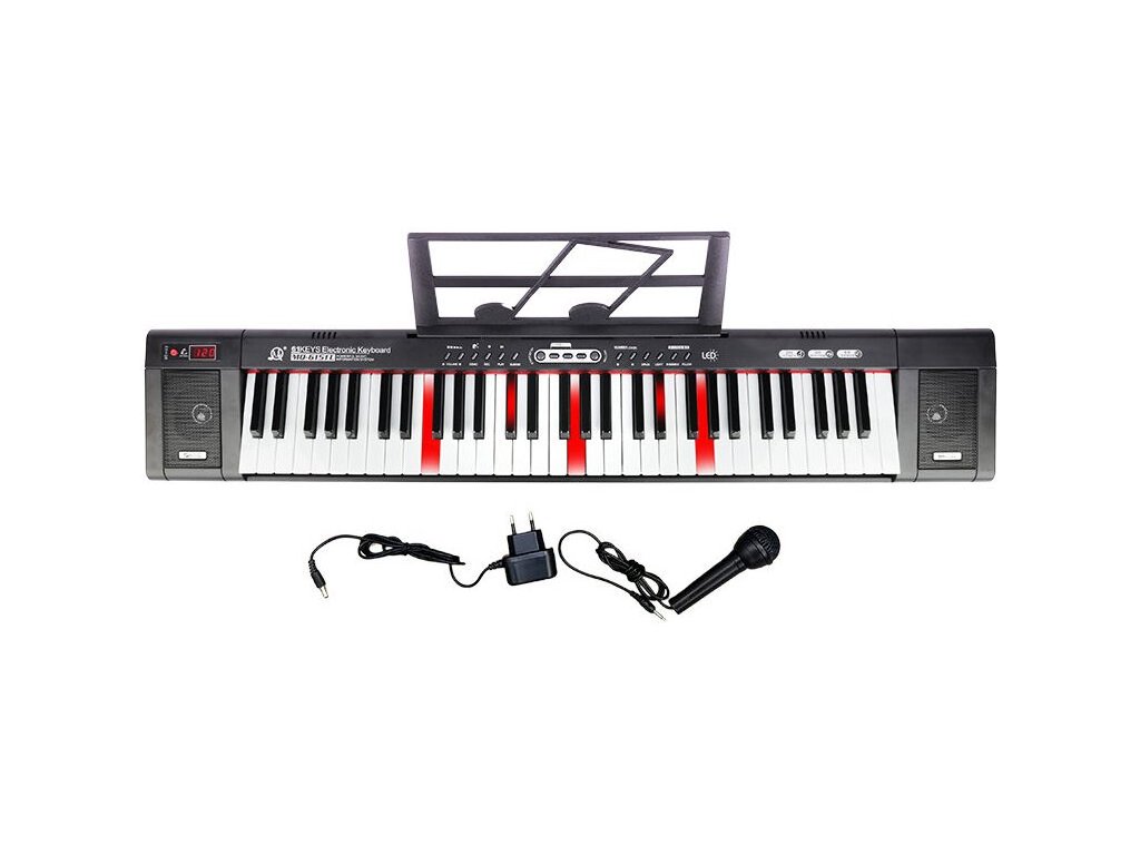 MQ 6151L je výukový klávesový nástroj s mikrofónom pre deti - má 61 klávesov, ktoré sú vybavené podsvietením pre lepšiu orientáciu na klaviatúre. Je to nástroj určený na výuku hry a pre každodennú zábavu s hudbou. Veľmi rozsiahla banka tónov, rytmov, ukážkových skladieb a široká škála ďalších funkcií z neho robí nástroj, ktorý pomáha rozvíjať hudobné záujmy a umožňuje objavovať bohatý svet zvukov.