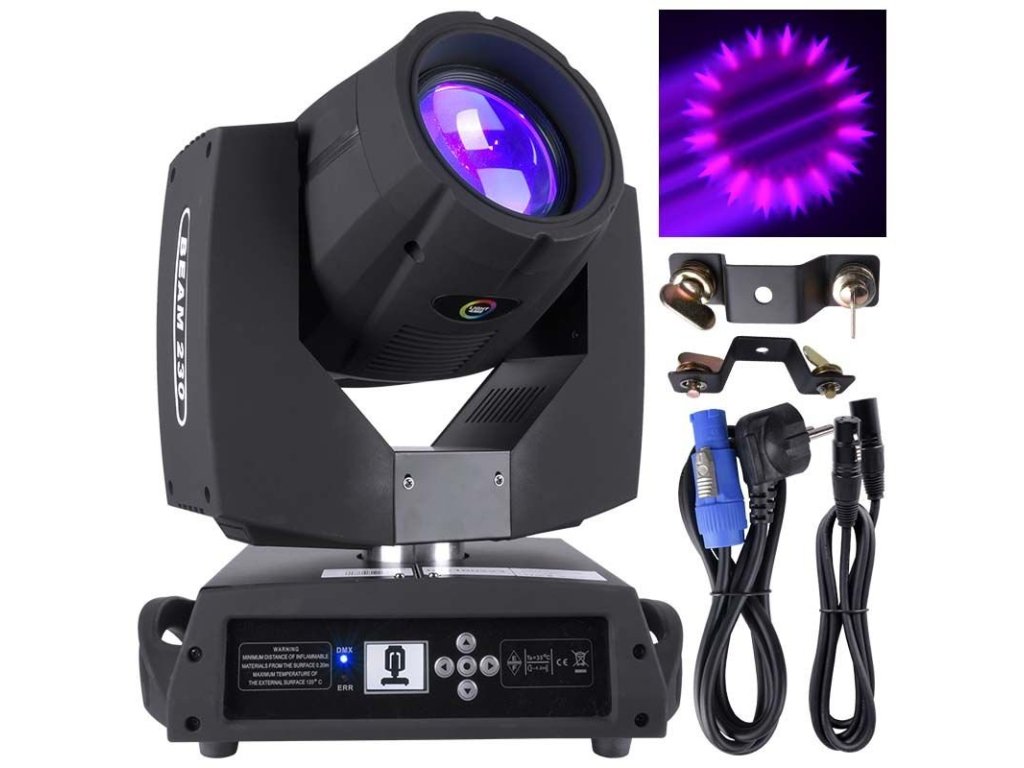 - Obsah balenia: 7R Beam 230W, napájací kábel, DMX kábel, montážne držiaky, návod na použitie
