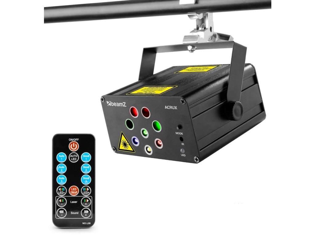 Acrux je úžasný laserový svetelný systém, ktorý rozžiari vašu párty a váš domov rôznymi magickými a blaženými vzormi. Jednoducho prepínajte medzi svetelnými režimami, vzormi a farbami pomocou jediného tlačidla na diaľkovom ovládaní. Acrux je možné tiež ovládať zvukom pomocou vstavaného mikrofónu. Obsahuje diaľkové ovládanie, takže ho možno v prípade potreby ľahko namontovať mimo dosahu.
