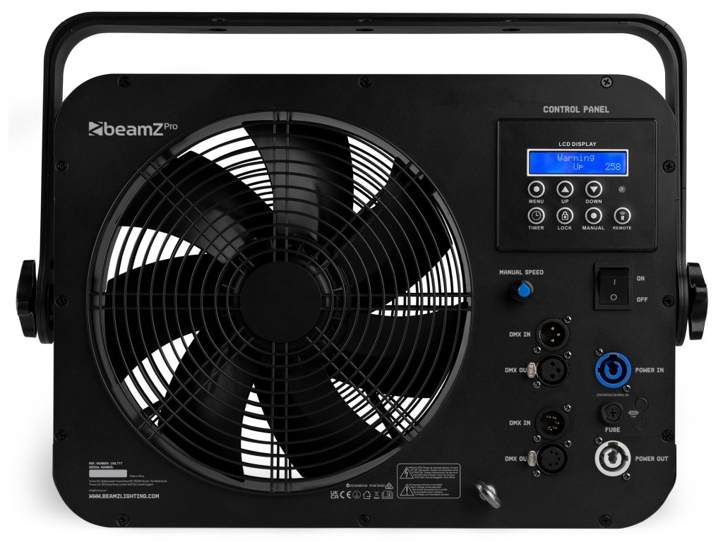 AF380 je axiálny ventilátor s DMX ovládaním, určený pre poloprofesionálne a profesionálne použitie. Ventilátor AF380, vybavený výkonným motorom, vytvára vysoké rýchlosti vetra. Jeden DMX kanál riadi rýchlosť ventilátora od pomalej po rýchlu. Ventilátor je vhodnýhodný pre rôzne aplikácie, napríklad rozptyl dymu, hmly, bublín a konfiet.