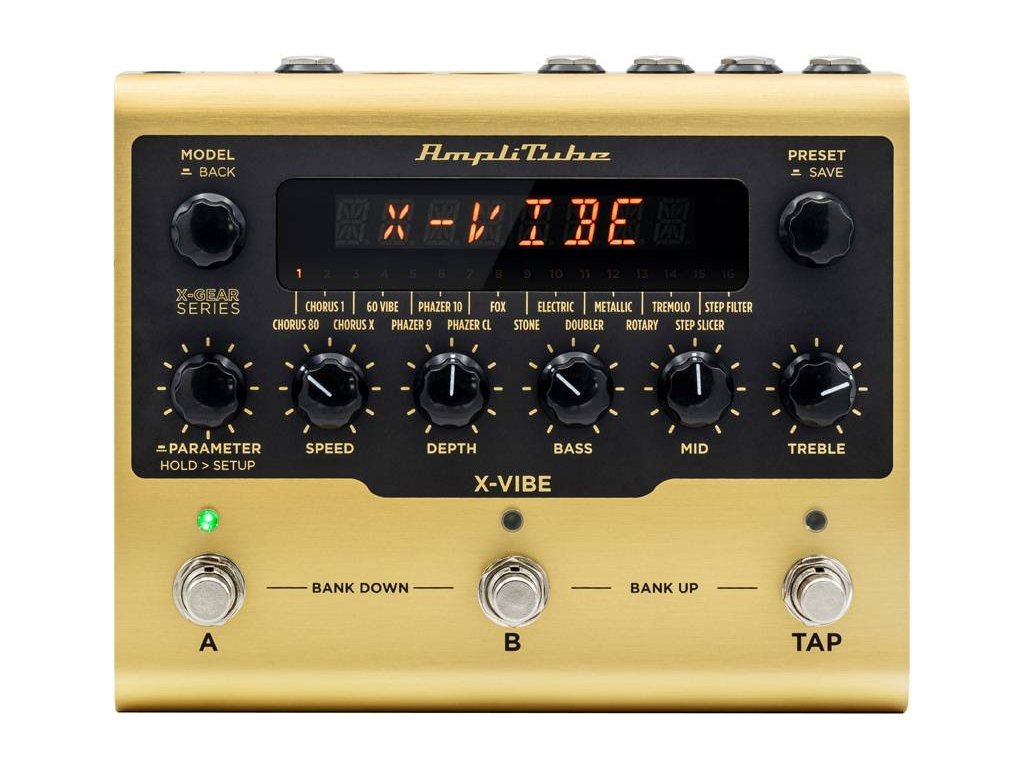 IK Multimedia X-VIBE je gitarový pedál postavený na základe AmpliTube technológie so 16 rôznymi typmi modulačných efektov.