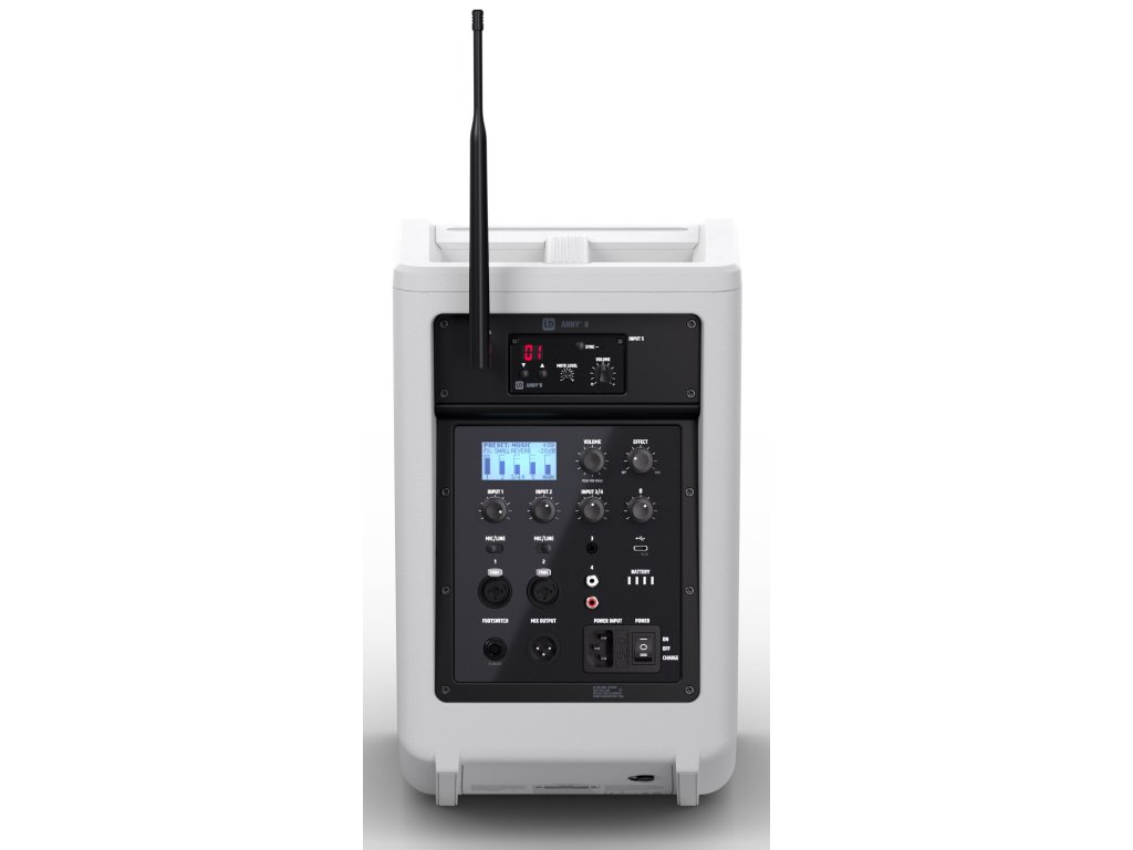 Vďaka integrovanému 5-kanálovému mixpultu, 3-pásmovému ekvalizéru, 5 predvoľbám pre rôzne použitie (MUSIC, LIVE, VOCAL, ECO, FLAT) a efektom, ako je reverb & delay, kombinuje komplexné funkcie a vynikajúcu kvalitu zvuku v kompaktnom a nadčasovom dizajne. ANNY 8 zaujme svojimi všestrannými možnosťami pripojenia: dva kombinované vstupy mikrofón/linka, jeden stereo kanál s 3,5 mm jackom (AUX) a vstupy RCA a tiež Bluetooth 5.0 s kodekom AAC. Táto rada vstupov umožňuje širokú škálu nastavení s kombináciou reči a hudby. Vstup pre nožný spínač umožňuje jednoducho a bez použitia rúk prepínať efekty reverb & delay pomocou externého nožného spínača počas hrania alebo spevu.