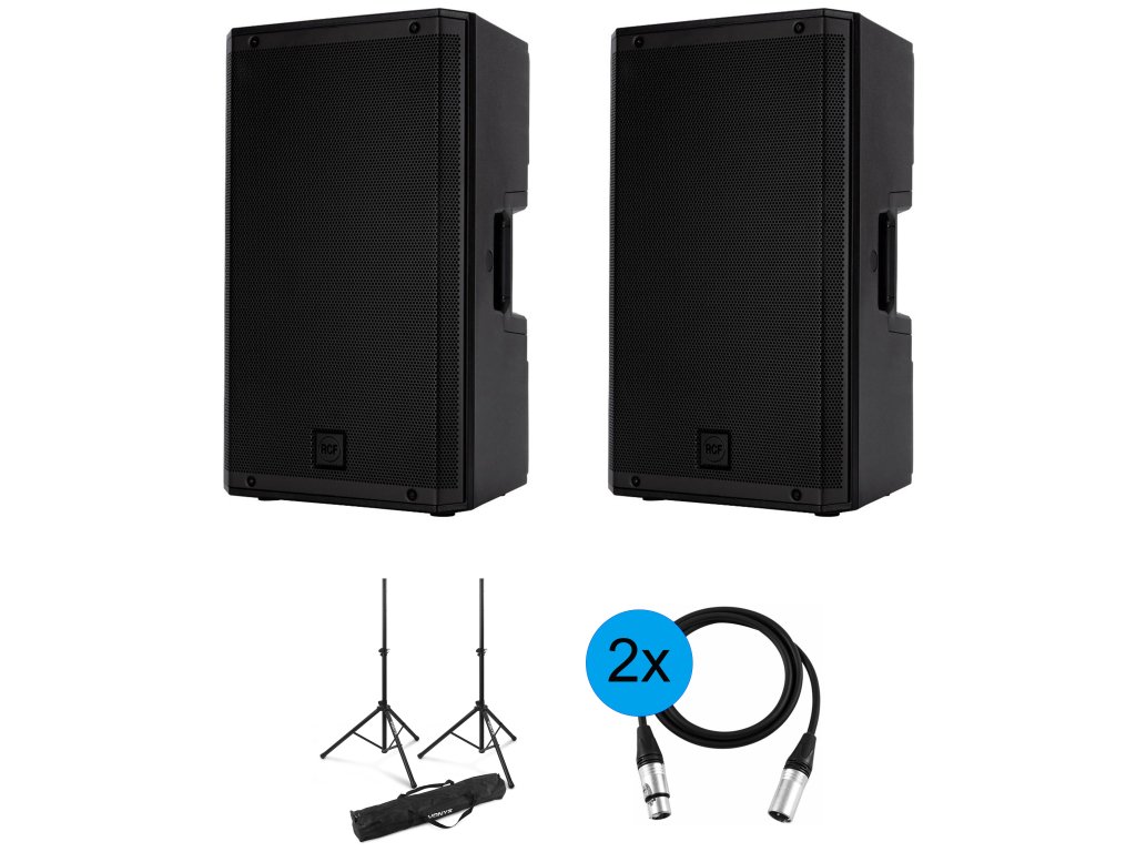 Výhodný set 2ks aktívnych reproboxov RCF ART 912-A, 2ks prepojovacích káblov Vonyx CX310-6 6m a sady statívov s prepravným puzdrom Vonyx LS01K.