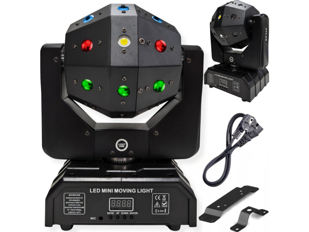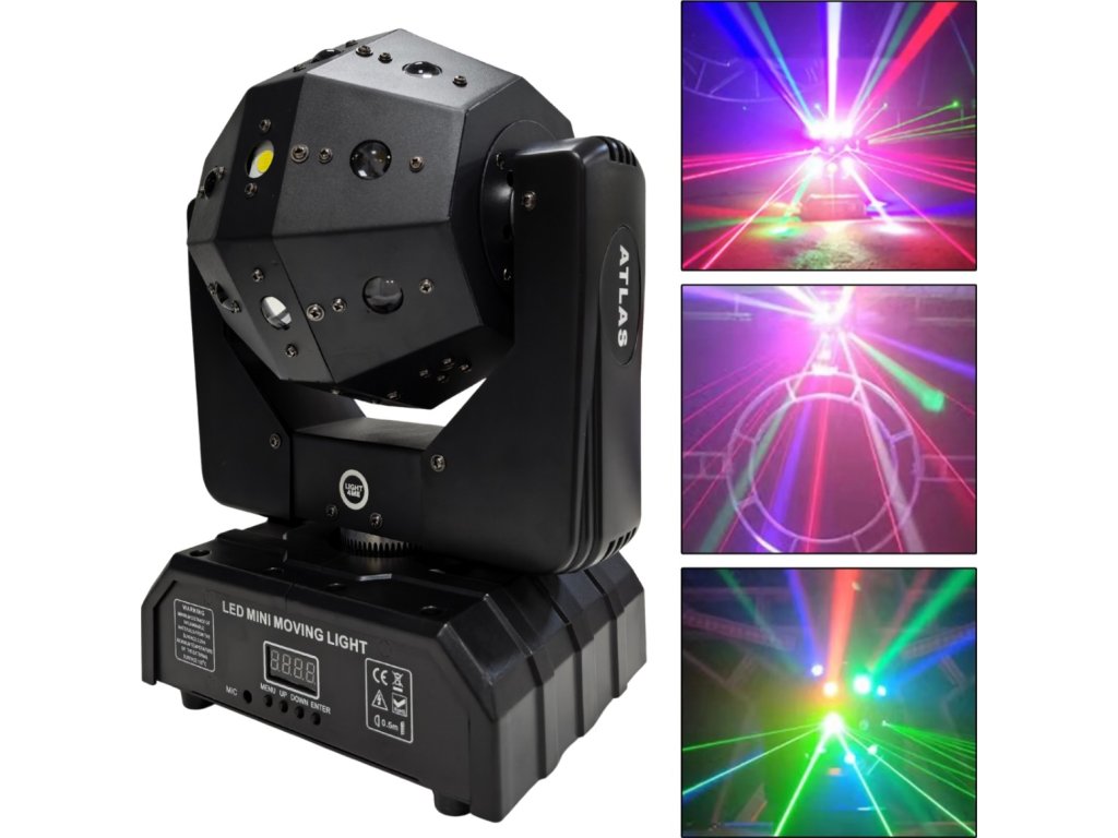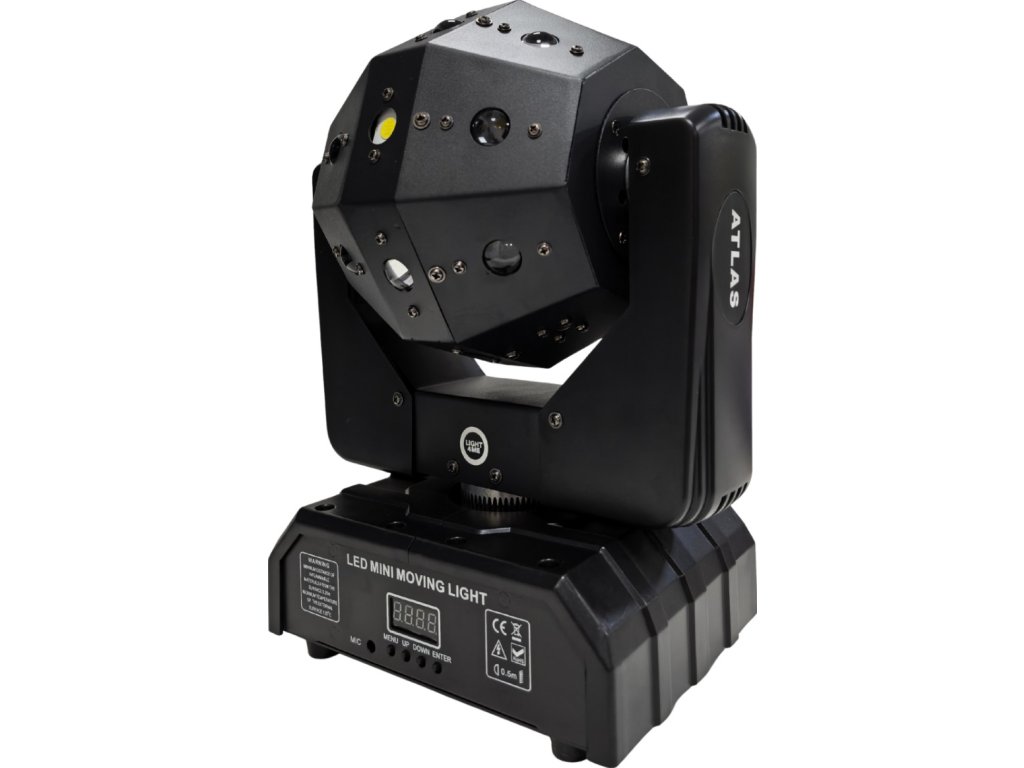 Vďaka rozsahu pohybu Pan 540° a Tilt 360° s možnosťou nekonečnej rotácie umožňuje Atlas vytvárať pôsobivé priestorové efekty. Použité LED makrá a pohybové makrá dodávajú dynamiku a uľahčujú obsluhu. Ľahká konštrukcia z ABS plastu + železa a oceľové držiaky lakované práškovou farbou zaisťujú odolnosť a pohodlie pri preprave. Je to ideálny nástroj pre mobilných DJov, eventové firmy a kultúrne domy.