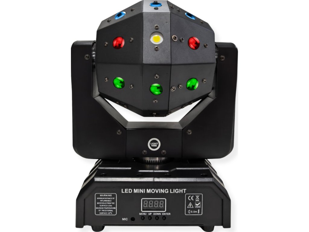 Prístroj ponúka prácu v režimoch DMX, auto, master/slave a sound, čo umožňuje jeho prispôsobenie takmer akémukoľvek scenáru použitia. Ovládací panel s LED displejom a intuitívnymi tlačidlami zaisťuje rýchlu a jednoduchú konfiguráciu. V režime sound môžete nastaviť citlivosť mikrofónu a v automatickom režime rýchlosť prevádzky. To je zárukou flexibility za všetkých podmienok.