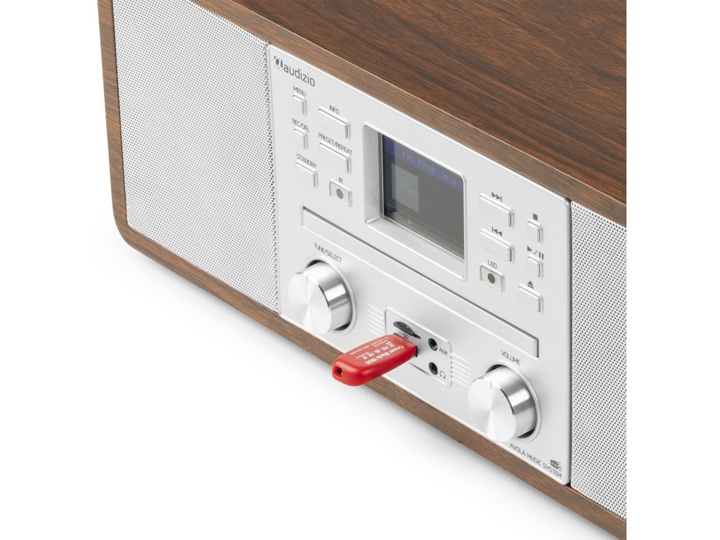 - DAB+ / FM rádio / internetové rádio / prehrávač CD