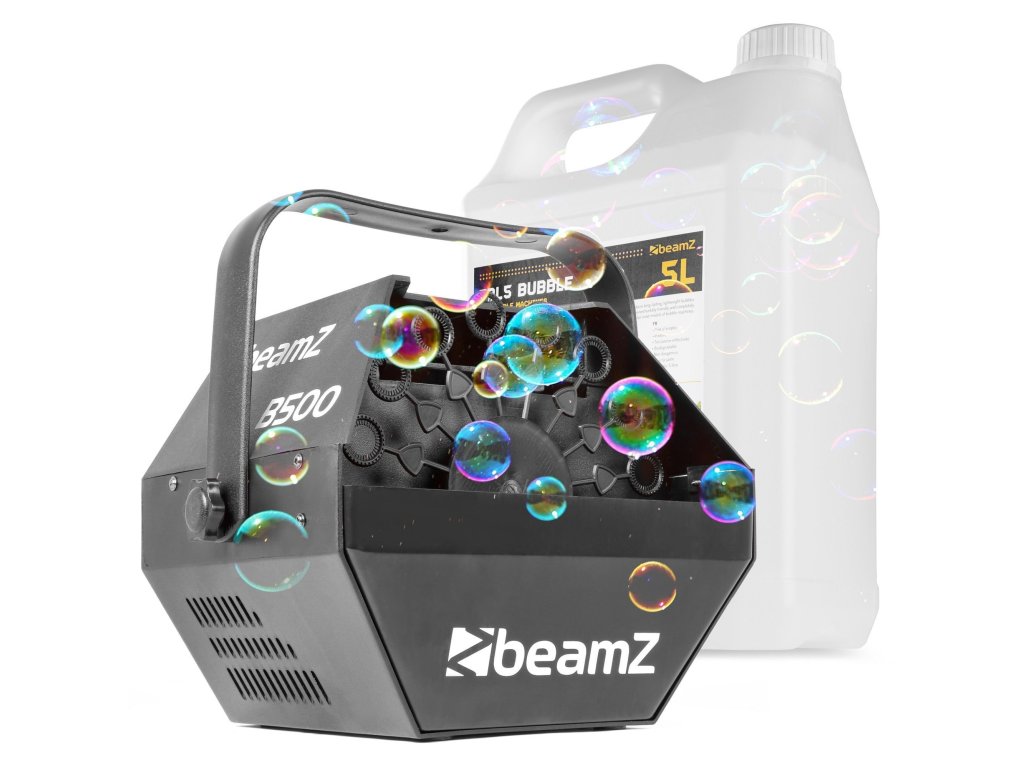 Výhodný set výrobníka bublín BeamZ B500 s kvapalinou do bublifuku BeamZ FBL5 5L.