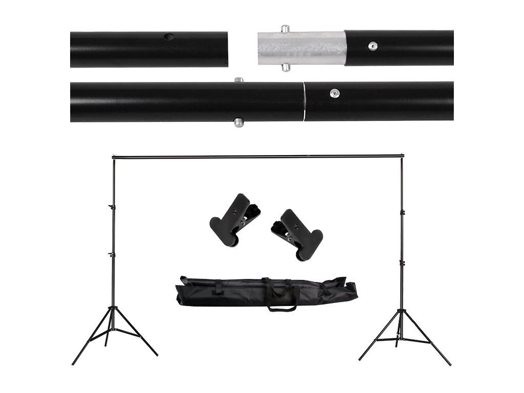 Univerzálna a vysoko kompaktná konštrukcia s pozadím vhodná pre fotografické, filmové a televízne ateliéry. Konštrukcia je plne rozložiteľná a rozmerovo nastaviteľná (výška/šírka), takže ju vždy prispôsobíte vašim potrebám a preferenciám. Sada obsahuje vysoko odolnú konštrukciu z ocele, držiaky a klipsne na pripevnenie látkovej plachty a prepravné obaly pre pohodlný a bezpečný transport.