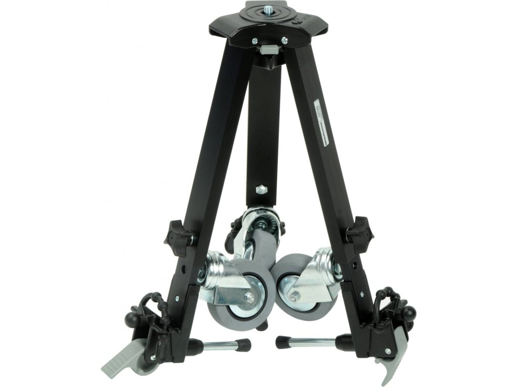 Pojazdová základňa s kolesami s priemerom 7,6 cm so zámkom, určené pre statívy s nízkou a strednou hmotnosťou.