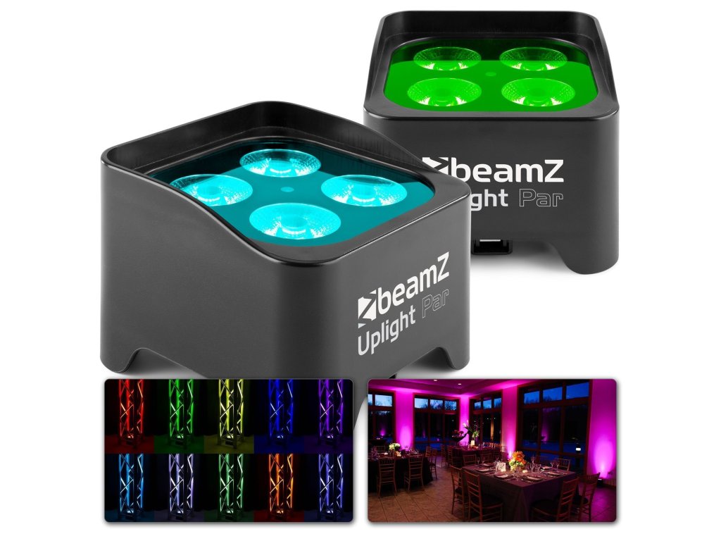 Výhodný set 2ks batériových LED svetiel s DMX a diaľkovým ovládaním BeamZ BBP90 Uplight Par 4x 4W RGB-UV.
