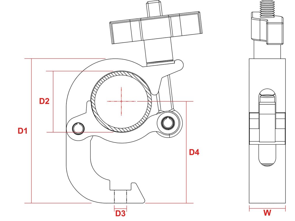 Táto univerzálna spojka navrhnutá tak, aby umožnila jednej osobe zavesiť ťažké svietidlá vďaka automatickému zatváraniu. Pre upevňovacie prvky potrubia a priehradových nosníkov. Vysoko pevná hliníková konštrukcia.