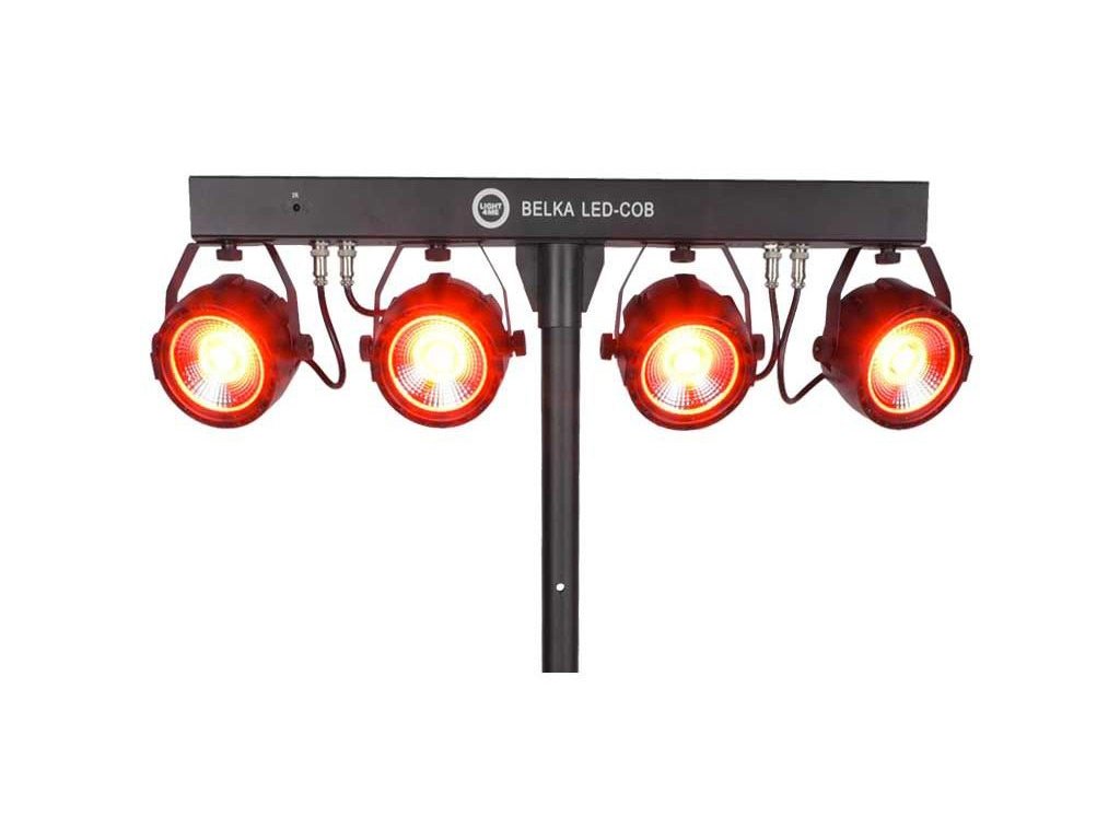 Rukoväť na statíve umožňuje rýchlu montáž a demontáž systému a vďaka pohodlnej taške, ktorá je súčasťou sady. COB LED BELKA je dokonalým riešením pre všetky druhy špeciálnych akcií (svadby, plesy atď.) A ako osvetlenie pre malé a stredné pódiá.