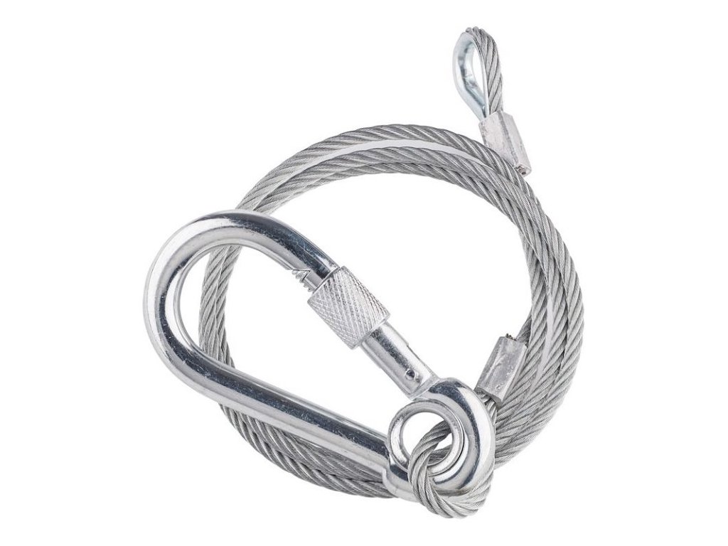 Bezpečnostné lanko s uzamykacou karabínou, bezpečné zaťaženie 20 kg pri správnom nastavení a statickom zaťažení, skvelé pre zabezpečenie svetiel nad hlavou na zostavách, nosníku a mriežkach. Priemer 3,5 mm, dĺžka 70 cm.