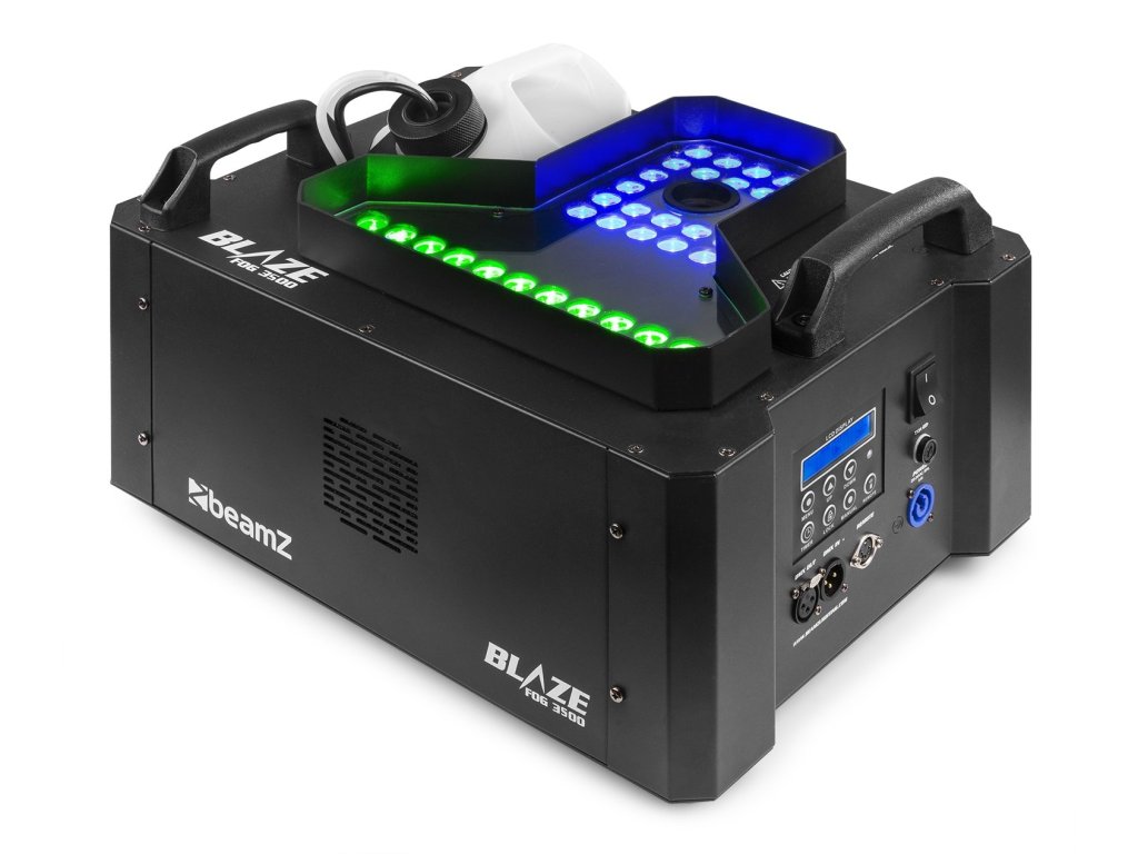Séria Blaze je rada profesionálnych výrobníkov hmly, ktoré vydávajú množstvo hmly, kedykoľvek ju potrebujete! Tieto odolné výrobníky sú vybavené vysoko výkonnými RGBA LED diódami a vedľa štandardnej vodorovnej polohy môžete tento stroj použiť aj zvisle, a to vďaka novo navrhnutému systému potrubia kvapaliny. Stroje Blaze je možné ovládať pomocou vstavaného ovládacieho panela s LCD displejom alebo pomocou dodávaných diaľkových ovládačov. Všetky majú vysoko kvalitné vykurovacie teleso a veľkú vstavanú nádrž na dymovú kvapalinu.