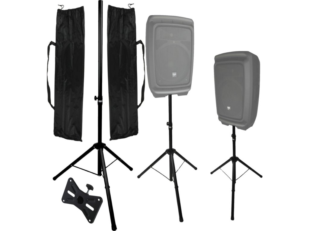 Zložený stojan meria iba 89 cm a zmestí sa do odolného obalu z netkanej textílie. Obal s ramenným popruhom a sťahovacou šnúrkou chráni stojan pred prachom a mechanickým poškodením počas prepravy a skladovania. Súprava je ideálna pre zvukárske firmy, technikov, mobilných DJ-ov a osoby vedúce multimediálne školenia. Celý set váži iba 6,2 kg, čo z neho robí praktického, ale robustného spoločníka pre každé vystúpenie.