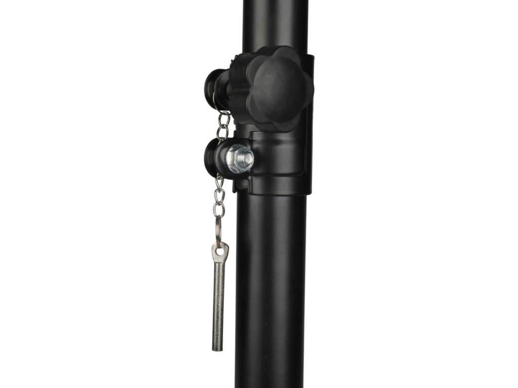 Nastaviteľný rozsah výšky od 89 do 180 cm umožňuje presné prispôsobenie nastavení podmienkam na scéne. Poistné kolíky a protišmykové nožičky zaručujú stabilitu aj na klzkom povrchu. Priemery rúrok stojana 35 a 38 mm zaisťujú kompatibilitu s väčšinou reproduktorových boxov dostupných na trhu. Vďaka dĺžke nôh stojana 66 cm a ich rozostupu až 93 cm máte istotu, že konštrukcia zostane stabilná aj pri intenzívnych basoch.