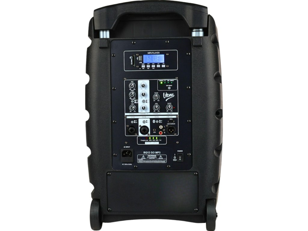 Vďaka akumulátoru 12V 7000 mAh môžete hrať až 12 hodín bez prerušenia. Indikátor nabíjania a stavu energie vám v každom okamihu poskytne prehľad o stave napájacieho zdroja. Transport? Žiadny problém – robustné telo z ABS plastu, výsuvná rukoväť a kolieska znamenajú pripravenosť na cestu v priebehu niekoľkých sekúnd. Či už je to rodinný piknik, prezentácia v škole, vonkajšia svadba alebo pouličné vystúpenie – V-TONE BQ12 GO MP3 zvládne každú výzvu.