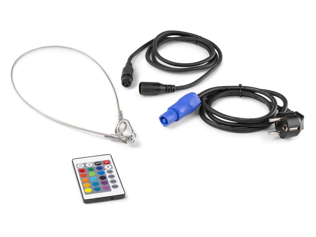- Príslušenstvo: DMX kábel, montážna konzola, napájací kábel, diaľkové ovládanie, bezpečnostný kábel