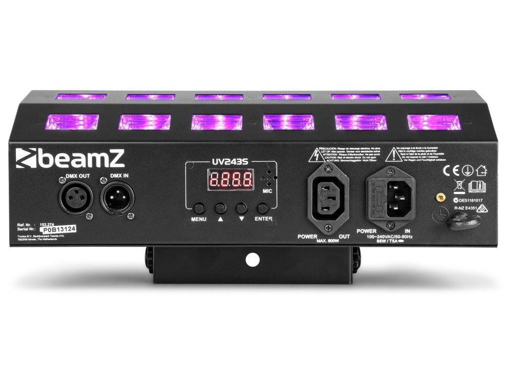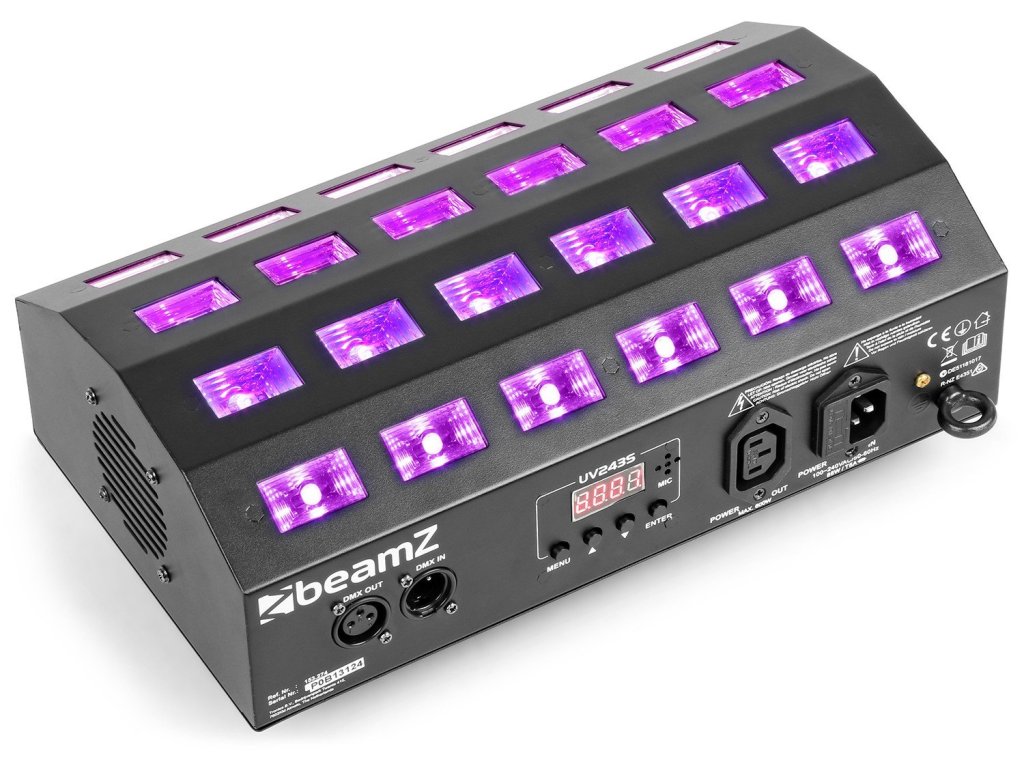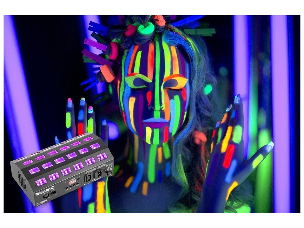 Silný a výkonný LED Flood reflektor osadený UV LED diódami. LED diódy sú rozdelené do 4 samostatne ovládateľných segmentov, čo vám dáva možnosť vytvárať efekty dráhy. Vzhľadom k tomu, že diódy LED sú umiestnené v miernom uhle, môžete vytvoriť veľmi široký rozptyl svetla a pokryť veľkú plochu. Vybavené vstupom / výstupom IEC pre reťazenie viacerých jednotiek dohromady.