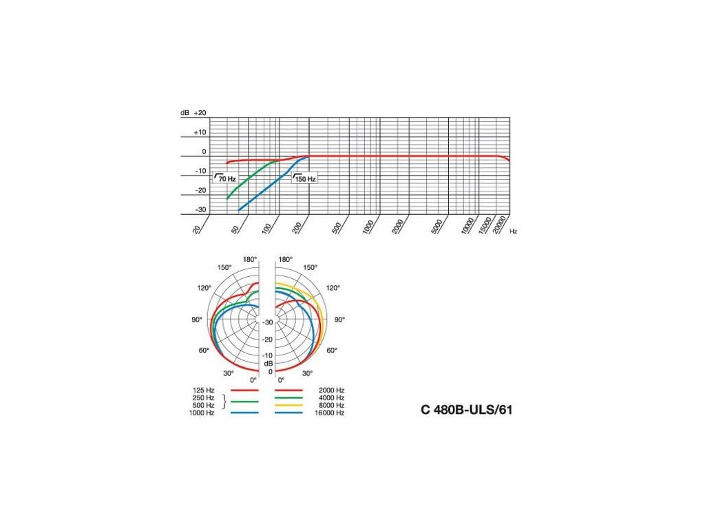 Referenčný kondenzátorový mikrofón z modulárnej série ULS, ktorý je zložený z predzosilňovača C 480 B-ULS a kardioidnej vložky CK 61 ULS. Poskytuje ultralineárnu odozvu v celom svojom frekvenčnom rozsahu. Kvalitné obvody spoločne so špeciálne navrhnutou výstupnou sekciou bez transformátorov znižujú vlastný šum systému na naprosté minimum a zamedzujú zníženiu kvality signálu aj pri použití veľmi dlhých prepojovacích káblov. Predzosilňovač je vybavený low-cut filtrom (voliteľne na frekvenciách 70 a 150 Hz) a trojpolohovým prepínačom citlivosti (-10 dB, 0 dB a +6 dB).