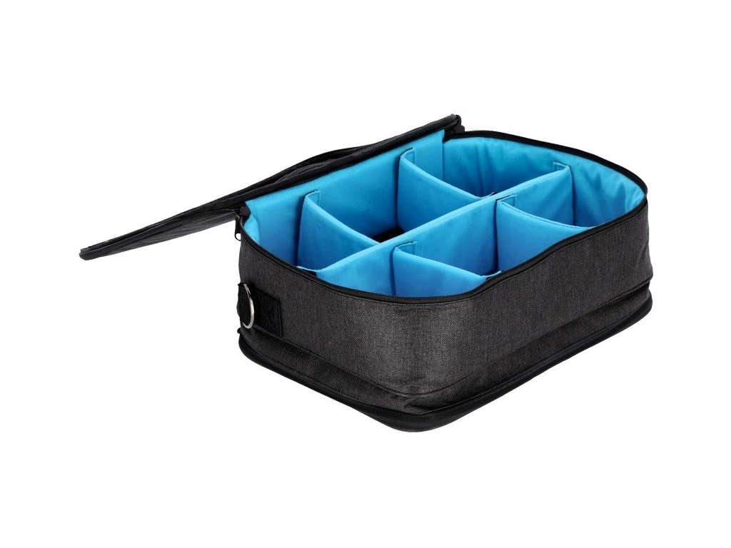 Predná priehradka sa skladá z troch sieťovaných vreciek s elastickými páskami špeciálne vyrobenými pre káble a ďalšie pre dlhšie káble. Okrem toho je tu sieťované vrecko na zips na uloženie napr. tabletu, ladičky a pod. Zadná časť ponúka dostatok priestoru pre 6 pedálov (napr. Palmer Pocket Amp), napájacie pásky, alebo dokonca hudobniny, multiefektové jednotky a powerbanky. Kreativite sa tu medze kladú iba priestorovo. S pomocou dodávaných prepážok je navyše možnosť urobiť si vo svojom repertoári drobných súčiastok vynikajúci poriadok.