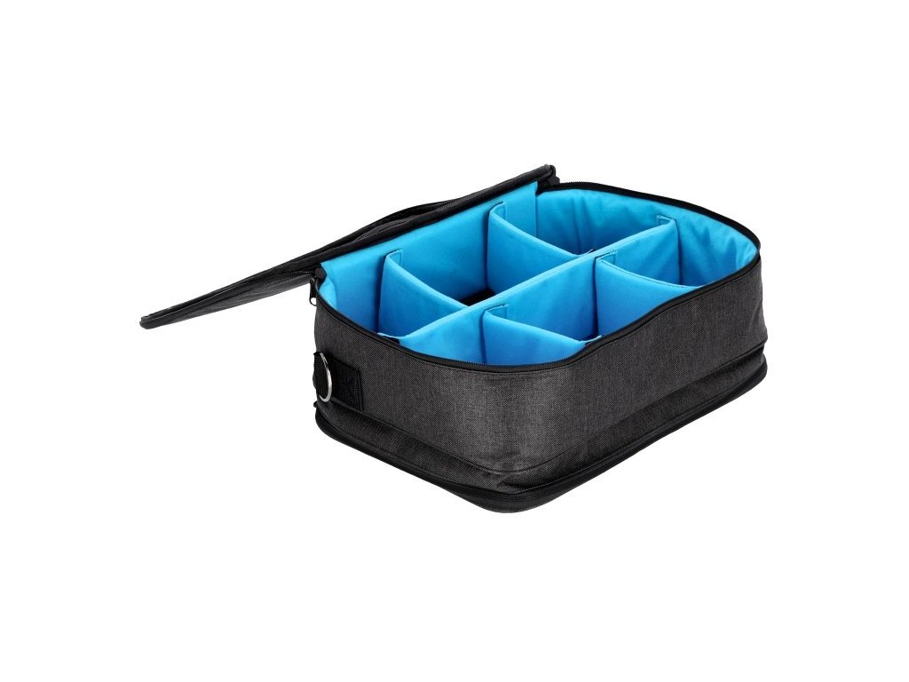 Predná priehradka sa skladá z troch sieťovaných vreciek s elastickými páskami špeciálne vyrobenými pre káble a ďalšie pre dlhšie káble. Okrem toho je tu tiež sieťované vrecko na zips na uloženie napr. tabletu, ladičky a pod. Zadná časť ponúka dostatok priestoru pre 6 pedálov (napr. Palmer Pocket Amp), napájacie pásky, alebo dokonca hudobniny, multiefektové jednotky a powerbanky. Kreativite sa tu medze kladú iba priestorovo. Navyše je tu možnosť s pomocou dodávaných prepážok získať vynikajúci poriadok vo svojom repertoári drobných súčiastok.