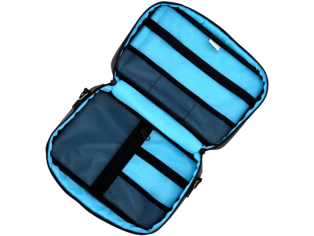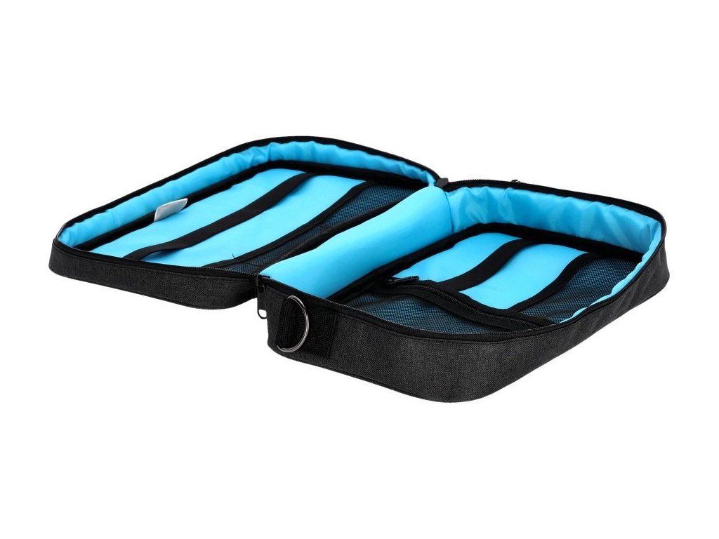 Vnútorný priestor sa skladá z troch sieťovaných vreciek s elastickými pásikmi špeciálne vyrobenými pre káble a ďalšie pre dlhšie káble. Okrem toho je tu sieťované vrecko na zips na uloženie mobilných telefónov, ladičiek alebo podobných predmetov.