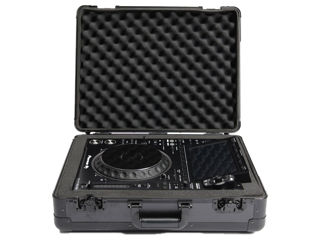 Nové puzdro CARRY LITE DJ-CASE PLAYER/MIXER je veľmi ľahké a kompaktné riešenie na prenášanie vášho DJ vybavenia a dodáva sa v peknom celočiernom matnom prevedení. Konštrukcia CARRY LITE je vyrobená z laminovaných MDF panelov a eloxovaných hliníkových profilov a je vybavená plne polstrovaným interiérom s dvojvrstvovou pick & pluck penou, ktorá umožňuje vytvoriť individuálne prispôsobené priehradky pre rôzne veľké multimediálne prehrávače a štvor kanálové mixážne pulty, ako sú Pioneer CDJ-3000, DJM-900NXS, Denon SC-5000 atď.
