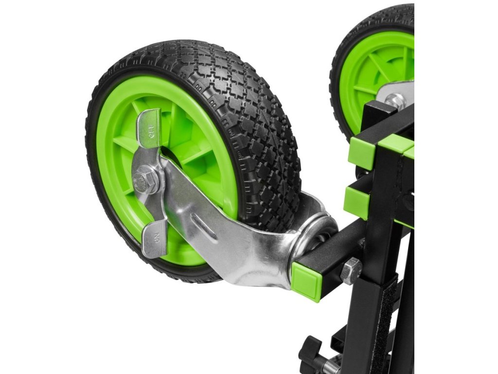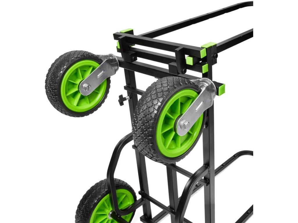 Zvukári, DJ-i a kulisári: Odľahčite si vďaka multifunkčnému vozíku. Podvozok vozíka Gravity Cart L 01 B je vyrobený z ocele, ktorá zaisťuje stabilitu. Dve pevné a dve otočné pneumatiky s nízkym valivým odporom a protišmykovou úpravou zaisťujú mimoriadnu manévrovateľnosť aj pri jazde po vyšších obrubníkoch alebo v nerovnom teréne.