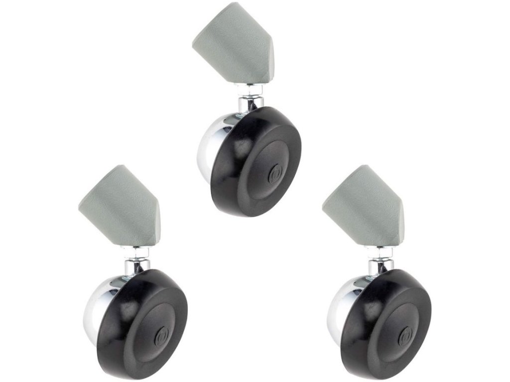 Sada 3 otočných koliesok pre stojany s priemerom trubky 19 mm. Nasúvajú sa a sú zaistené na mieste imbusovým kľúčom, veľmi hladké rolovanie.