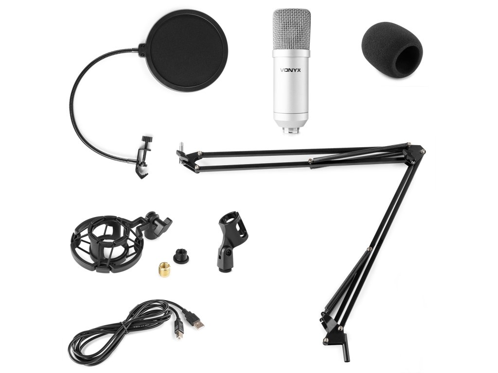 Vonyx CMS300S set štúdiového USB mikrofónu, strieborný