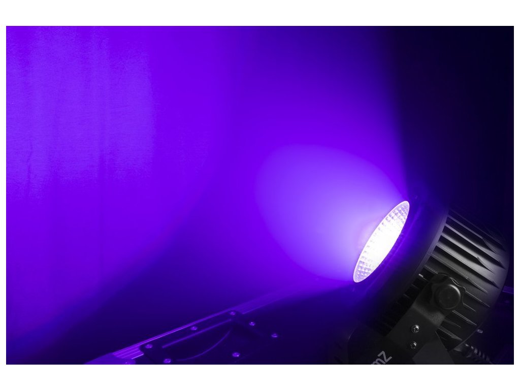 Výkonný LED PAR reflektor osadený 50 W COB diódou. Vyžarovací uhol 60, RGBWA miešanie farieb, funkcia stmievania a Strobo efekt. Automatický prevádzkový režim, funkcia Master/Slave, ovládanie DMX signálom a hudbou pomocou zabudovaného mikrofónu.