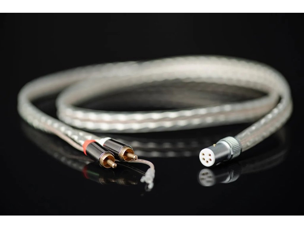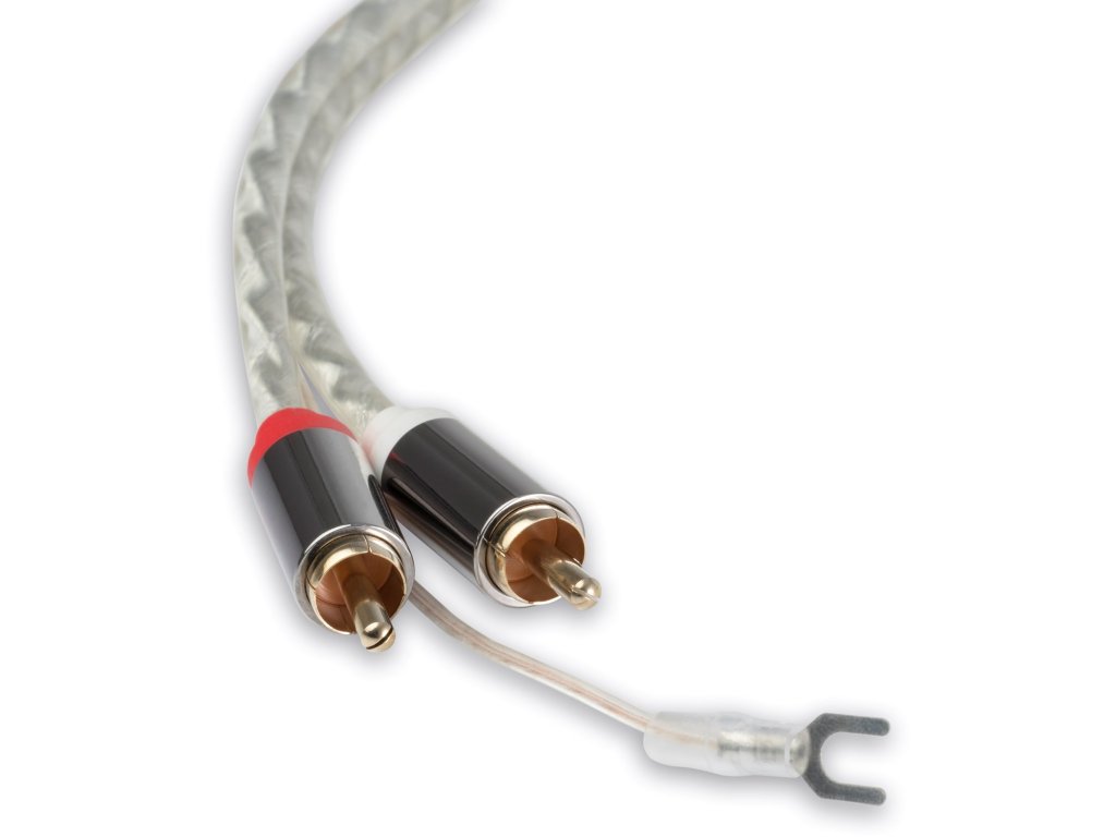 Dva samostatne tienené vodiče na kanál sú zakončené kvalitnými konektormi 5P a RCA s vysokou vodivosťou. Mosadzné kontakty sú prispôsobené pre pevné uchytenie a sú pozlátené 24-karátovým zlatom pre optimálny prenos signálu a nadštandardnú odolnosť proti korózii. Kábel je transparentný a ako dielektrikum je využitý materiál na báze polyetylénu. Tienenie je zo 100 % tvorené fóliou pre efektívne potlačenie elektromagnetického a vysokofrekvenčného rušenia. Súčasťou kábla je aj uzemňovací vodič opatrený na svojom konci vidličkou pre jednoduché uchytenie k uzemňovacej svorke phono zosilňovača.