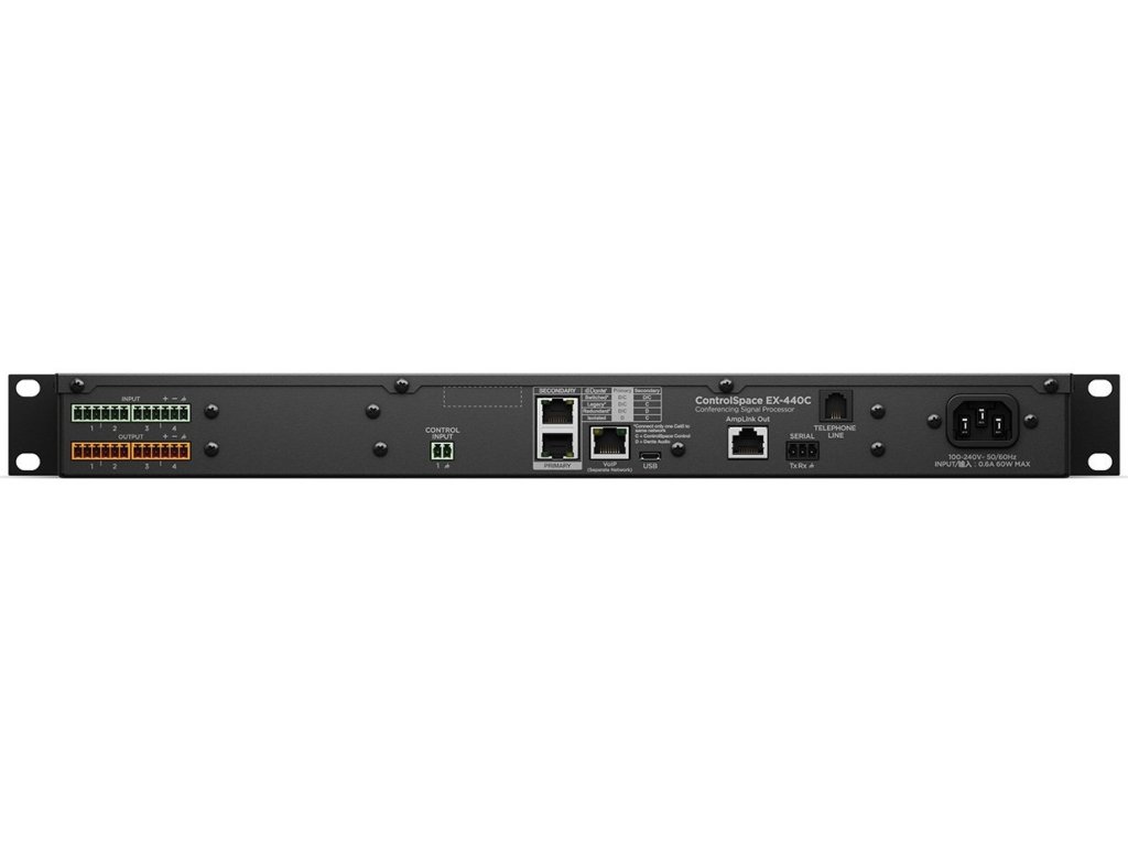 Digitálny procesor ControlSpace EX-440C s otvorenou architektúrou a konštrukciou „všetko v jednom“ uľahčuje integráciu vysokokvalitných mikrofónov a spracovanie zvuku pre malé až stredne veľké konferenčné miestnosti. Rôzne vstupy a výstupy umožňujú flexibilnú konfiguráciu: štyri mikrofónne/linkové analógové vstupy, štyri analógové výstupy, vstavaný VoIP, PSTN, USB, výstup Bose Professional AmpLink, osemkanálové potlačenie akustickej ozveny (AEC) a pripojenie 16 × 16 Dante. Softvér ControlSpace Designer zjednodušuje proces nastavenia pomocou programovania metódou drag-and-drop, takže konfigurácia je rýchla a jednoduchá.