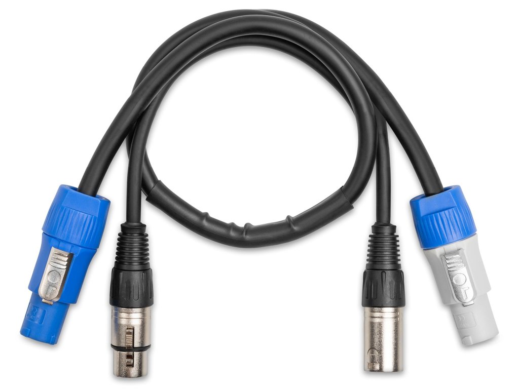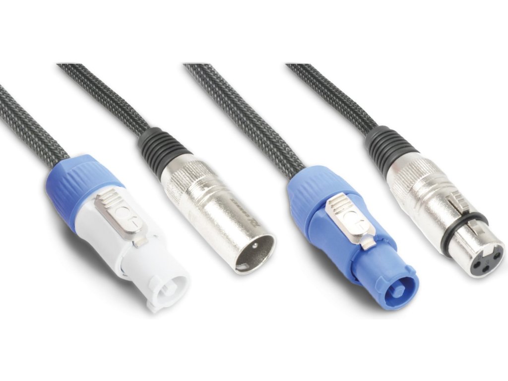 Napájanie a DMX signál v jednom kombinovanom kábli. Vďaka konektorom Powerconnector a XLR na oboch koncoch uľahčujú tieto káble zapojenie profesionálnych LED efektov, pohyblivých hláv alebo nasvetľovačov stien.