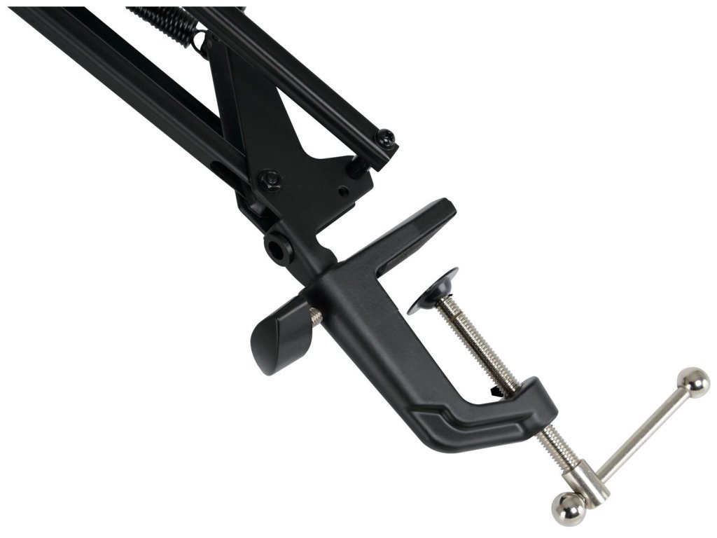 Univerzálny stolný mikrofónny stojan s nastaviteľným ramenom vhodný pre nahrávacie štúdiá, producentov, tvorcov broadcastov, Youtuberov a študentské rádiá. Stojan je vyrobený kombináciou ocele, hliníka a odolného plastu, ďalej disponuje otočnými kĺbmi pre maximálnu flexibilitu. Stojan ďalej ponúka suché zipsy pre estetické umiestnenie upevnenia kábla, takže ho vo vašom videu nikto neuvidí. Stojan je veľmi skladný, vhodný na častý transport, k stolu ho pripevníte prostredníctvom 60mm závitu.