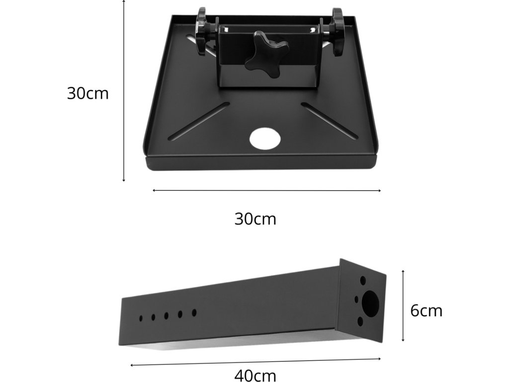 Máte dosť obmedzení pri umiestňovaní ďalšieho vybavenia? Vďaka tomuto nástavcu bez problémov prispôsobíte uhol sklonu a výšku svojim individuálnym preferenciám. Manuálne nastavenie pomocou otočných gombíkov zabezpečuje rýchle a stabilné polohovanie, zatiaľ čo maximálna nosnosť až 10 kg poskytuje bezpečné miesto pre kontroléry, mixážny pult alebo notebook.