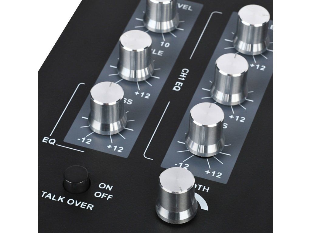 Tento analógový stereo mixážny pult ponúka plnú korekciu nízkych, stredných a vysokých tónov pre každý kanál. Regulácia EQ umožňuje prispôsobiť charakter zvuku každému hudobnému žánru – od hlbokých basov až po krištáľovo čisté vokály.