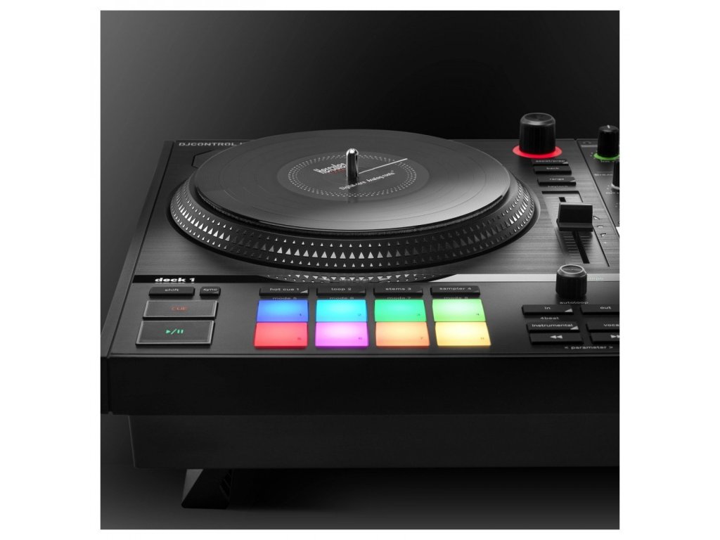 - 16 podsvietených RGB padov, tlačidlá Loop In/Loop Out, enkodér slučiek, funkcie Stems, takže môžeš vytvárať úžasné mashupy a mixy