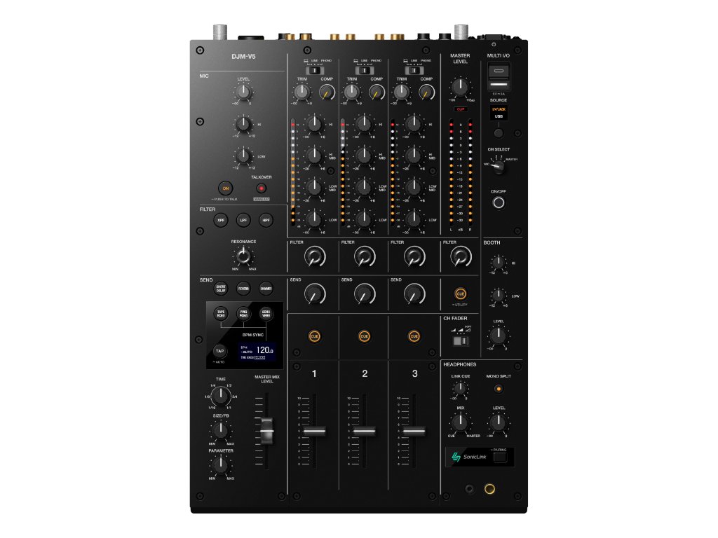 Väčšina ovládacích prvkov bude DJom zvyknutým na DJM-V10 okamžite známa. Štvorpásmový ekvalizér, kompresor, filter a Send FX poskytujú rovnakú hĺbku ovládania zvuku ako vlajková loď AlphaTheta osvedčená na festivaloch, ale v podstatne kompaktnejšom prevedení. Na rozdiel od modelu V10, ktorý je k dispozícii v štandardnej aj long fader verzii, je DJM-V5 špeciálne navrhnutý pre technické mixovanie a štandardne je vybavený 60mm dlhými fadermi.