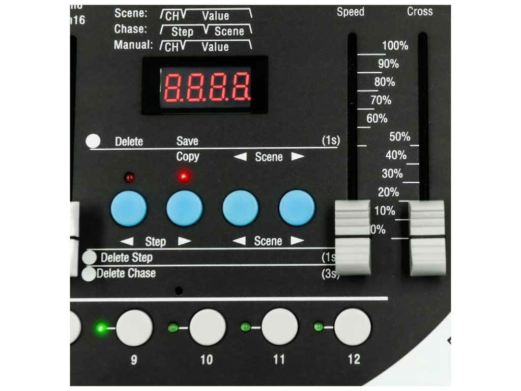 - Ovládacie slidery: 8 (kanály) + 2 (speed, cross)